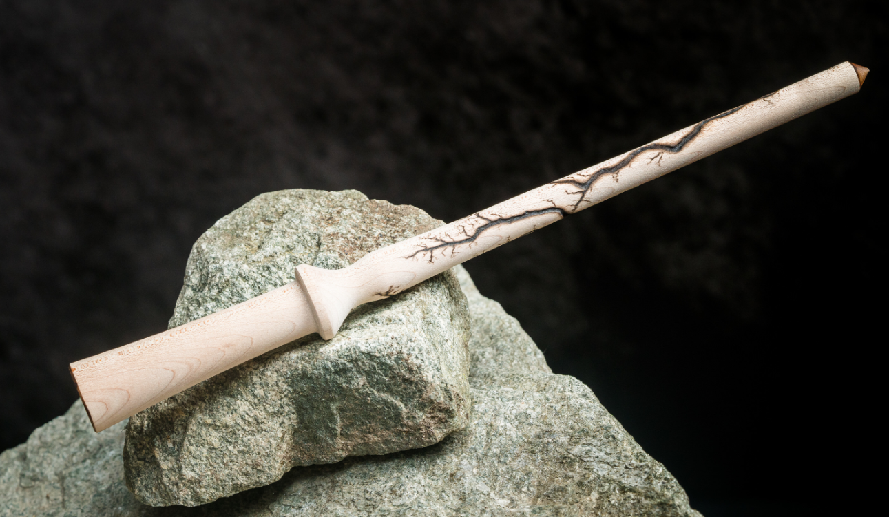 We also offer an experience like no other: the opportunity to select the specific piece of wood used in your wand from our extensive collection and direct the wand's coming to being in our studio. You tell us how to make it - what style of handle, how long, the diameter, type of taper, any burnishing, type of finish - and participate while it comes to life in front of you. Measured by your hand - thinner, thicker, smoother, longer, rougher - all your choice.